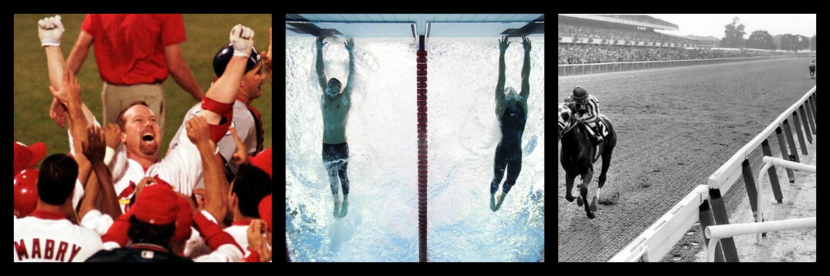 3) The 1973 Belmont Stakes. My dad would refer to this race as “the greatest moment in sports,” and if you watch the race, it would be hard for you to argue with that assessment. When I watch the race, my heart just about explodes with pride as Secretariat, the powerful horse with the huge heart, pulverizes his competitors, winning the race by 31 lengths. “Secretariat is widening now … he is moving like a tremendous machine.” Toward the end of the race, it appears that there are two races instead of one: Secretariat running his own, and all the rest battling a second so far behind. The other horses weren’t even in the film shot as Secretariat finished the race. That is power. It’s overwhelming to see.