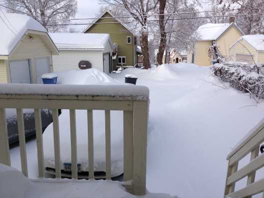 I’m 100% snowed in which is perhaps a good thing since I have 40 pages of my novel due on Sunday, and I realized yesterday that I’m short one book somehow (I have to read 13 by Sunday. I only read 12).