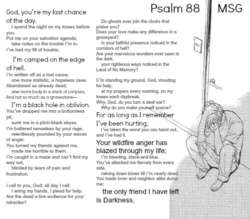 These verses put my deepest heart sorrows into words. Even though the psalm is a devastating one, it was good to find myself in the pages of the Word. I’m glad I don’t feel this same pain anymore!