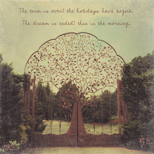 “Then he breathed upon me and took away the trembling from my limbs and caused me to stand upon my feet. And after that, he said not much, but that we should meet again, and I must go further up and further in. Then he turned him about in a storm and flurry of gold and was gone suddenly.
