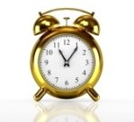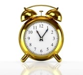 an old-fashioned alarm clock, two bells like golden mushrooms