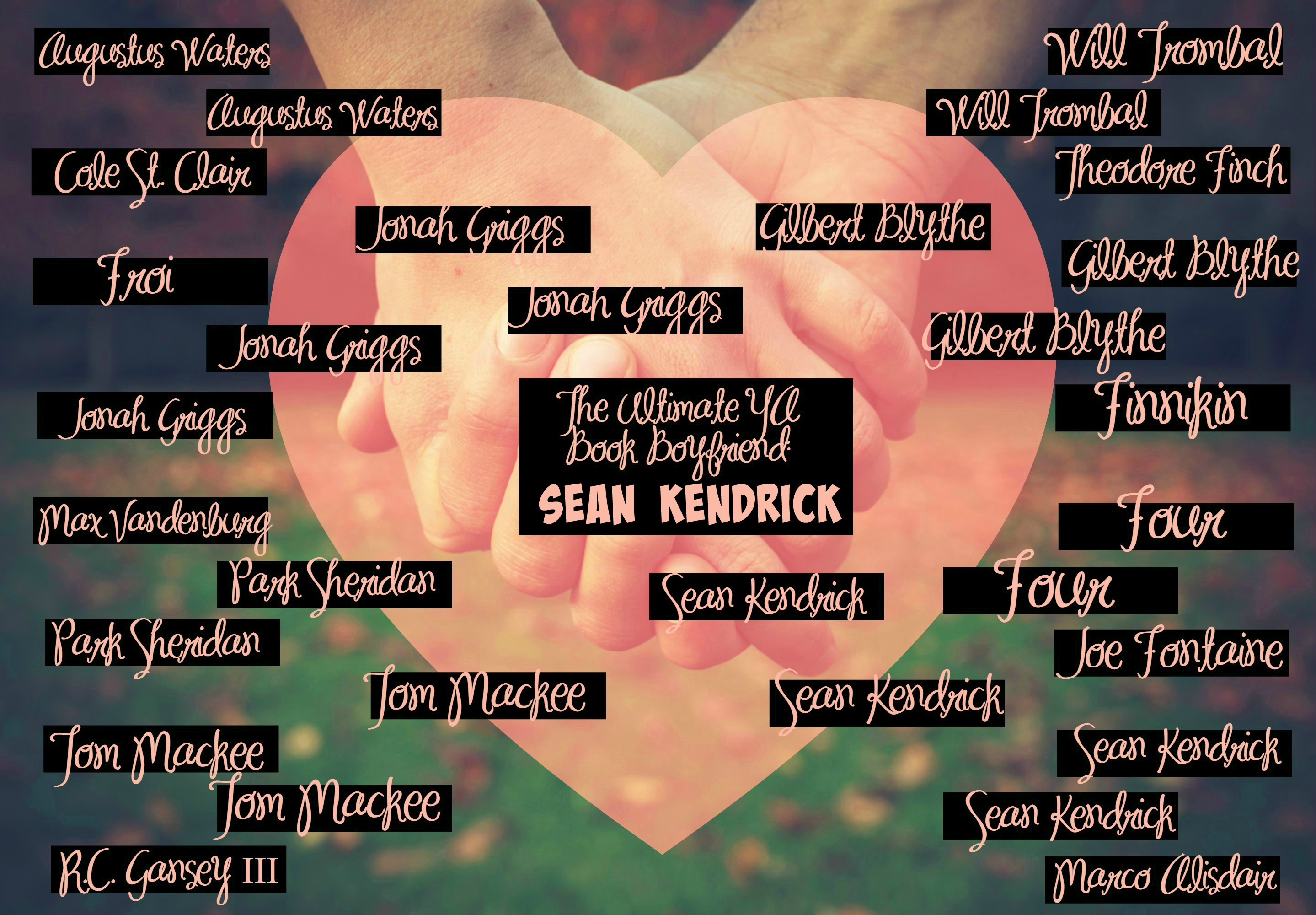My friends, we’ve come to the championship round as we discover the Ultimate YA Book Boyfriend! This week, I honestly don’t know whom to vote for. Jonah Griggs, that perfect tank who sneaks in your window and orders toast with marmalade for you on the hardest morning of your life? Or Sean Kendrick, who will tuck your ponytail into your collar, that young king of Skarmouth who brings bread for dinner? I can’t decide.